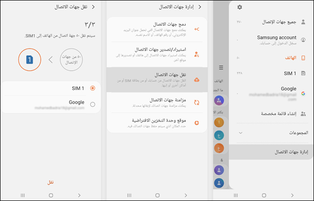 نقل جهات الاتصال من الهاتف إلى شريحة Sim على الاندرويد